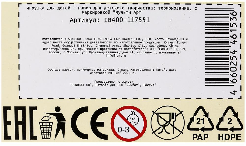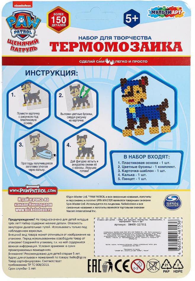 💳 Оплатить за товар можно при получении 🇰🇿 Есть бесплатная доставка по Казахстану от 1 дня 🎁 Копите бонусы с каждой покупки Набор для детского творчества — термомозаика «Щенячий патруль» ТМ «Мульти Арт» — отличный подарок для ребёнка: |