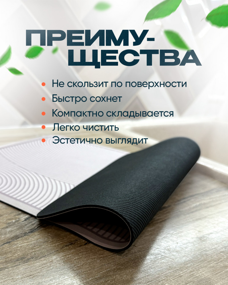 Нано коврик для мокрой посуды — многофункциональный помощник для чистоты и порядка в доме! Он состоит из 4 уникальных слоев, которые делают его незаменимым для кухни и не только.