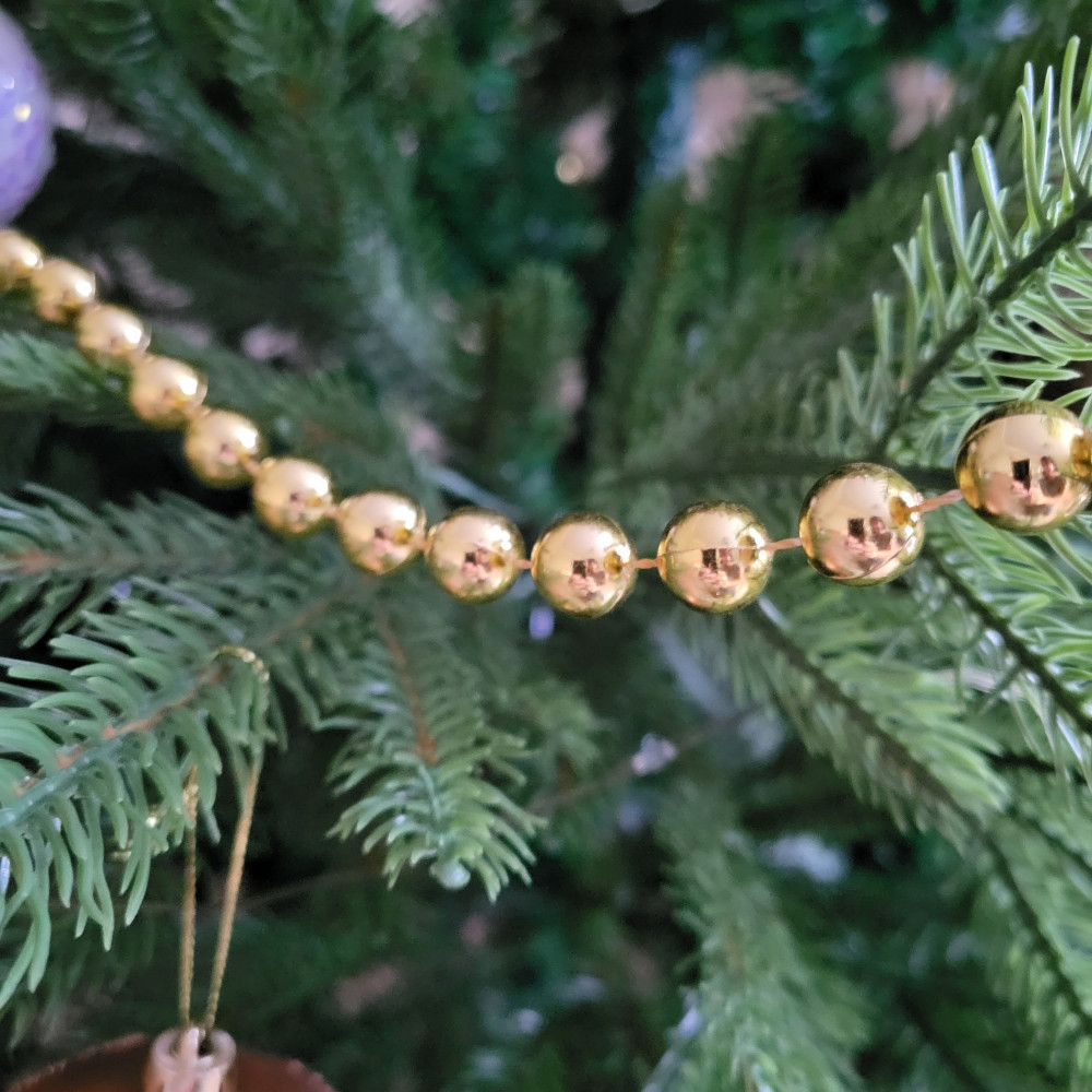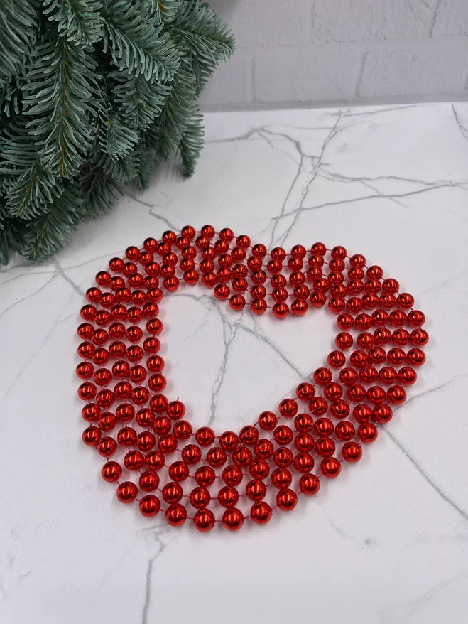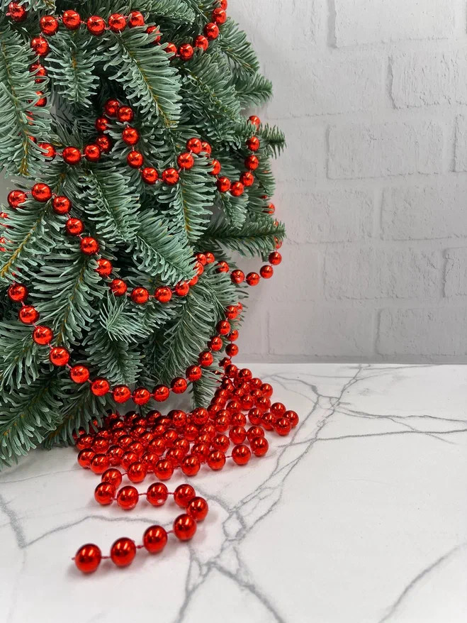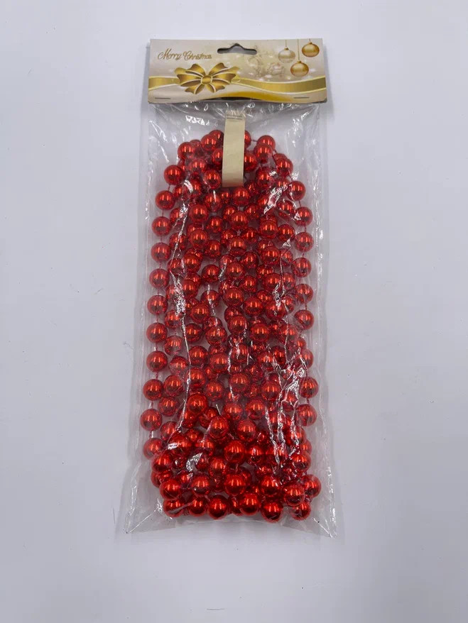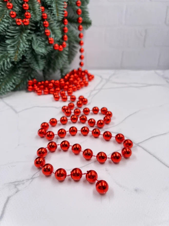 Бусы крупные, увесистые, каждая бусинка зафиксирована на нитке. На ёлке смотрится красиво. Хватило на один оборот вокруг ёлки.