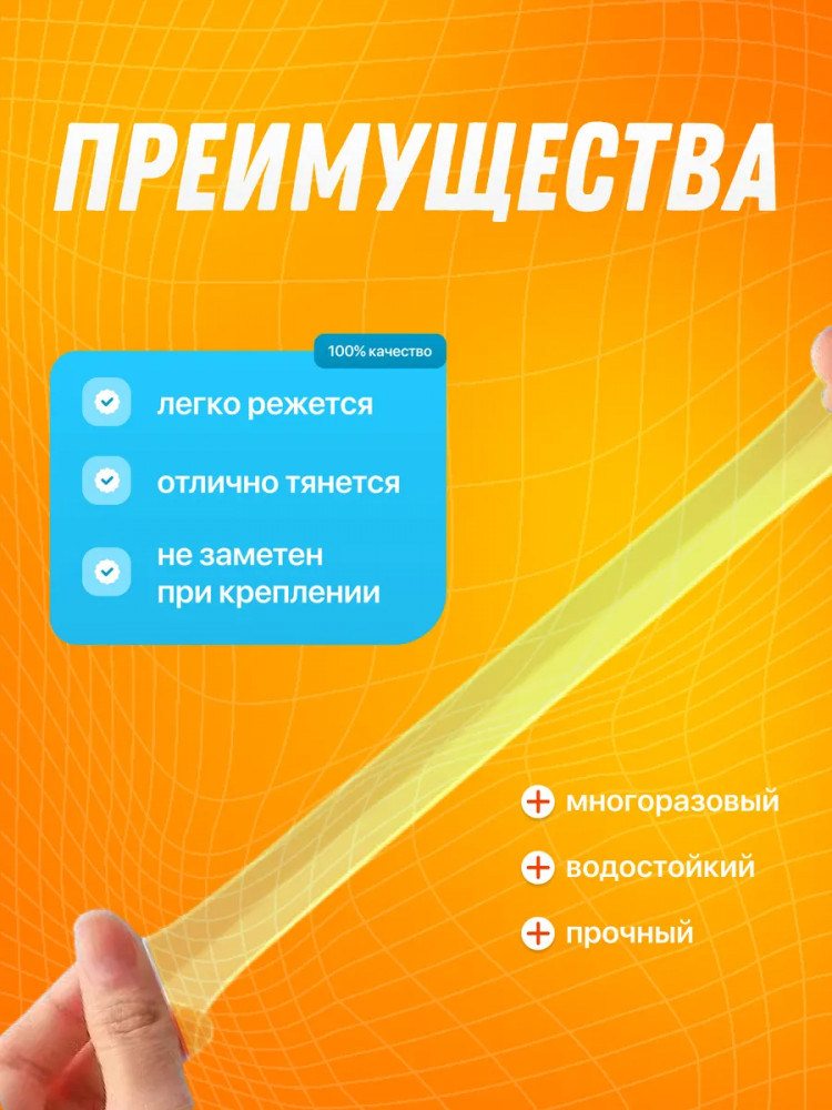 💳 Оплатить за товар можно при получении 🇰🇿 Есть бесплатная доставка по Казахстану от 1 дня 🎁 Копите бонусы с каждой покупки Нано скотч — это двусторонний прозрачный скотч, который обладает высокой степенью адгезии и может крепко держать различные предметы на поверхности. Этот продукт отличается своей универсальностью и простотой в использовании, благодаря чему он становится идеальным решением для домашнего и офисного использования. |
