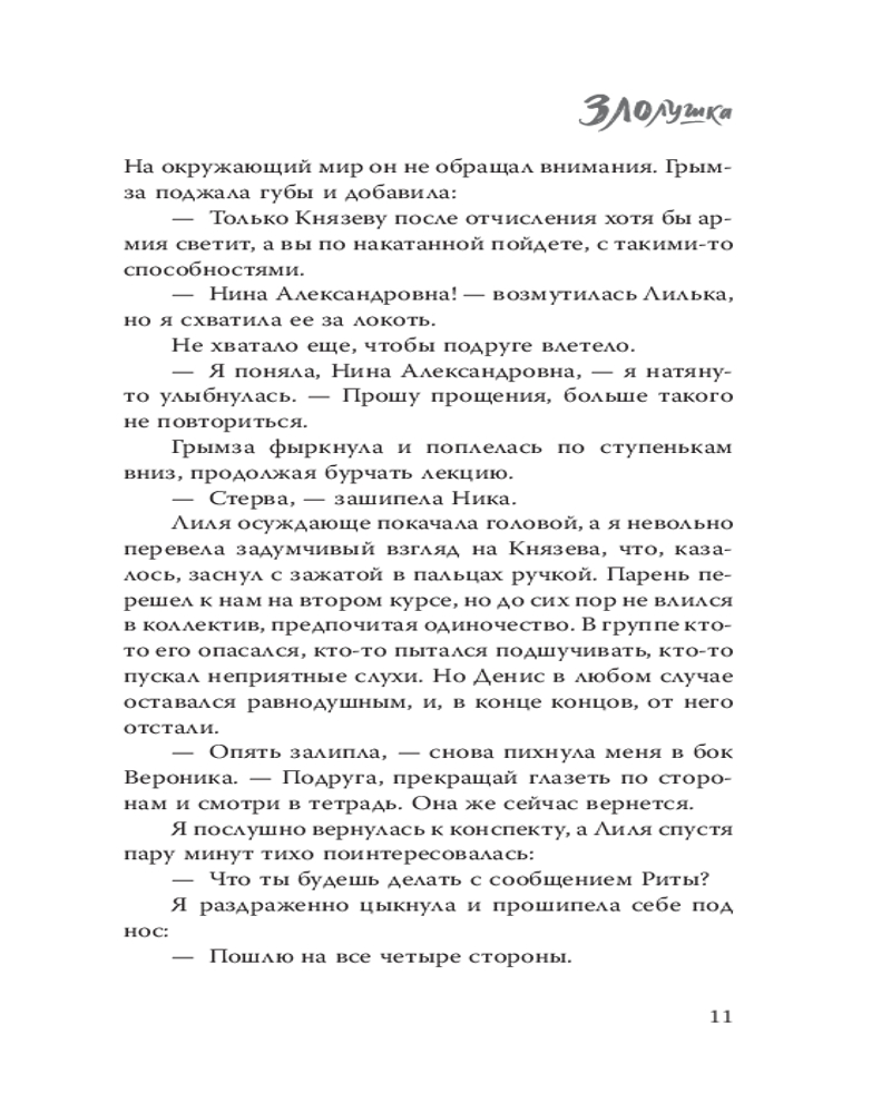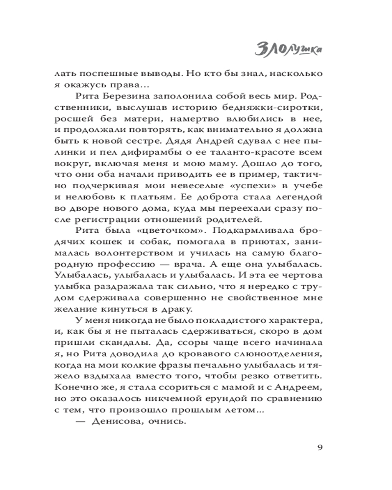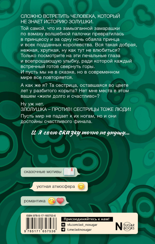 💳 Оплатить за товар можно при получении 🇰🇿 Есть бесплатная доставка по Казахстану от 1 дня 🎁 Копите бонусы с каждой покупки Серия: NoSugar. (С)нежная любовь Сложно встретить человека, который не знает историю Золушки. Той самой, что из замызганной замарашки по взмаху волшебной палочки превратилась в принцессу и за одну ночь обаяла принца и всех подданных королевства. Вся такая добрая, нежная, хрупкая, ну как тут не влюбиться? Только посмотрите на эти печальные глаза и всепрощающую улыбку, ради которой каждый встречный готов свернуть горы. И пусть мы не в сказке, но в современном мире всё повторяется. А как же я? Та сестрица, оставшаяся в цвете лет у разбитого корыта? Нет мне места в этом вашем «жили долго и счастливо»? Ну уж нет. Злолушка — против! Сестрицы тоже люди! Пусть мир не падает к их ногам, но и они достойны настоящей сказки. И я свою точно не упущу... |