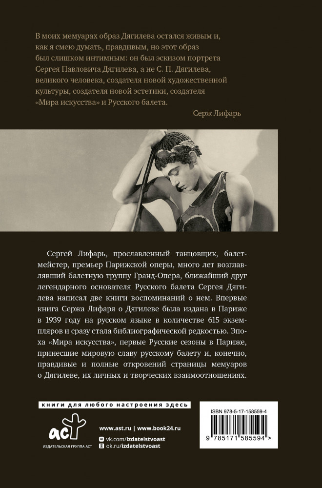 💳 Оплатить за товар можно при получении 🇰🇿 Есть бесплатная доставка по Казахстану 🎁 Копите бонусы с каждой покупки Серия: Большое искусство. Персоны и биографии Сергей Лифарь, прославленный танцовщик, балетмейстер, премьер Парижской Оперы, много лет возглавлявший балетную труппу «Гранд-Опера», ближайший друг легендарного основателя Русского балета Сергея Дягилева, написал две книги воспоминаний о нем. Впервые книга Сержа Лифаря о Дягилеве была издана в Париже в 1939 году на русском языке в количестве 615 экземпляров и сразу стала библиографической редкостью. Эпоха «Мира искусства», первые «Русские сезоны» в Париже, принесшие мировую славу Русскому балету, и, конечно, правдивые и полные откровений страницы мемуаров о Дягилеве, их личных и творческих взаимоотношениях. |