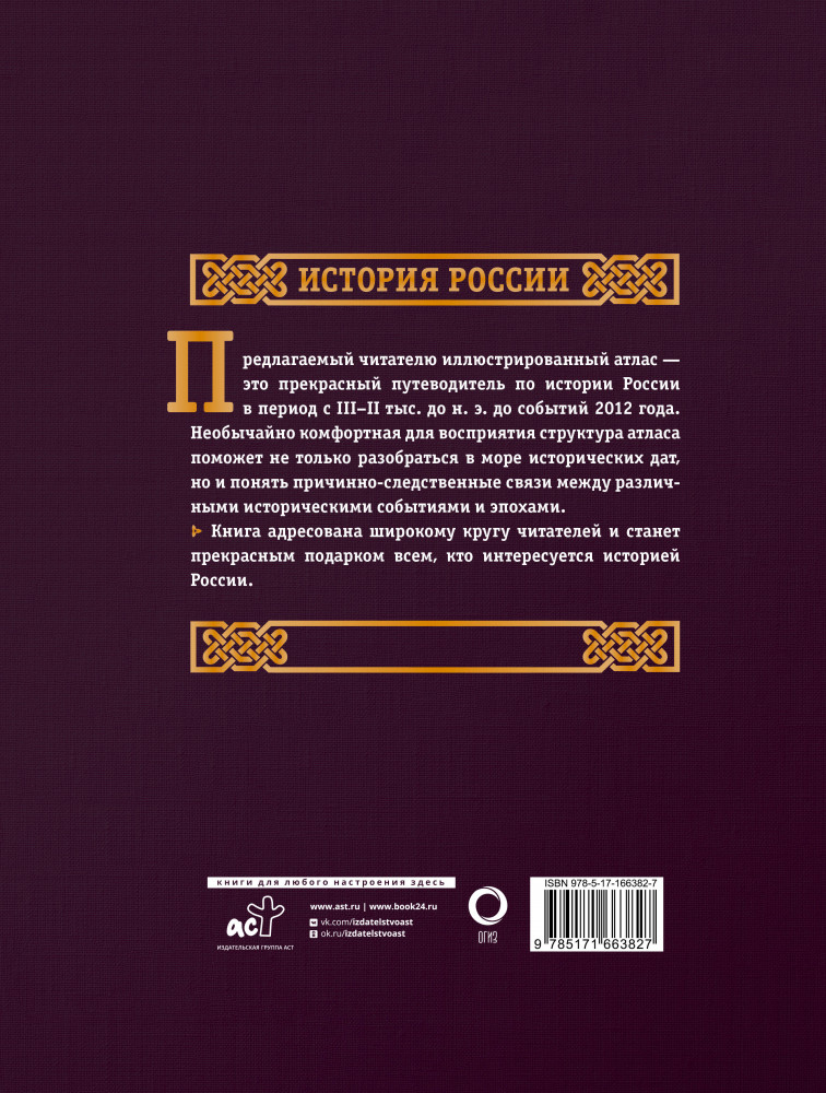 💳 Оплатить за товар можно при получении 🇰🇿 Есть бесплатная доставка по Казахстану от 1 дня 🎁 Копите бонусы с каждой покупки Серия: Большая подарочная книга (футляр) Этот атлас — путеводитель по истории России в период с III–II тыс. до н.э. до событий 2012 года. Необычайно комфортная для восприятия структура атласа поможет не только разобраться в море исторических дат, но и понять причинно-следственные связи между различными историческими событиями и эпохами. Книга адресована широкому кругу читателей и станет прекрасным подарком всем, кто интересуется историей России. |