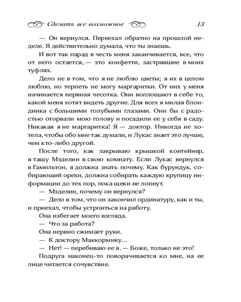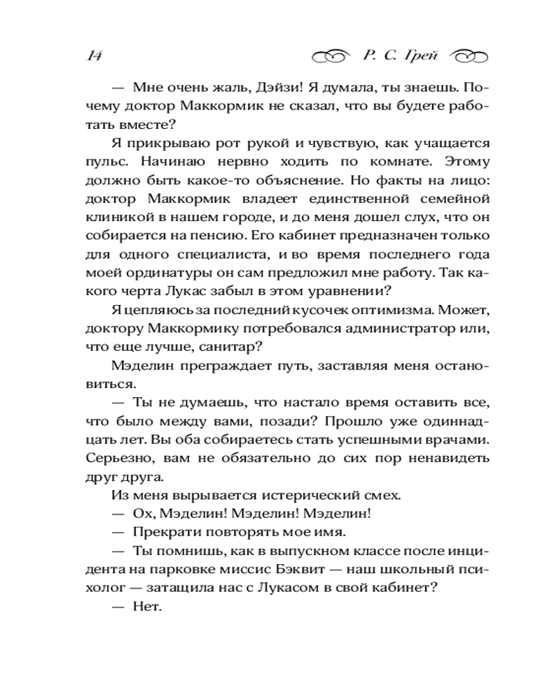 💳 Оплатить за товар можно при получении 🇰🇿 Есть бесплатная доставка по Казахстану от 1 дня 🎁 Копите бонусы с каждой покупки Серия: Ваниль и шоколад Лукас Тэтчер — мой главный враг. Всегда им был, сколько себя помню: бесконечные подколки, тычки и подтрунивания... Наша война затихла на десять лет — нет, не потому, что мы повзрослели и поумнели, просто я уехала в поисках лучшей жизни. Получила престижное медицинское образование. Стала востребованным специалистом. В конце концов, расцвела. Всё было просто прекрасно — пока я не вернулась домой и не встретилась с этим самовлюбленным, высокомерным, заносчивым... красавчиком. Это что, Лукас? Прежний хулиган из школы? Нет, только не говорите мне... Да, он тоже изменился. Может быть, мы бы даже поладили, если бы не одно «НО»: он ступил на мою территорию, тоже став врачом. Теперь нас ожидает схватка не на школьном дворе, а на рабочем месте. И победитель будет только один! Я уверена в своих силах... Если бы не тот поцелуй... Черт, кто разрешил ему играть не по правилам?! |