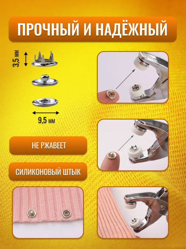 💳 Оплатить за товар можно при получении 🇰🇿 Есть бесплатная доставка по Казахстану от 1 дня 🎁 Копите бонусы с каждой покупки Заклепочник для одежды поможет красиво и прочно оформить, сумки или шторы. Пресс для кнопок изготовлен из прочного АБС-пластика, он оснащен пятью когтями для установки заклепок и кнопок. В комплекте вы найдете набор заклепок, кнопки для одежды пластик, люверсов 100 шт для быстрого старта. |
