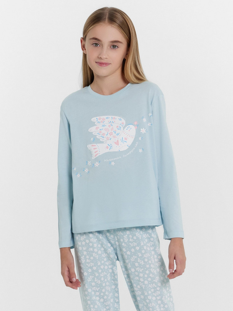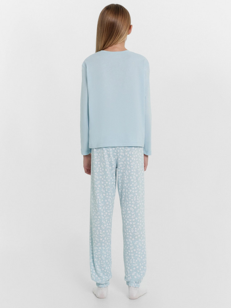 Уютный комплект для девочек состоит из джемпера и брюк. Горловина круглой формы. Рукава длинные втачные. Перед и спинка цельнокроеные. Брюки длинные, немного заужены к низу. Пояс цельнокроенный с эластичной тесьмой внутри. Стильный и комфортный — лучший вариант для сна, отдыха и домашних дел.
