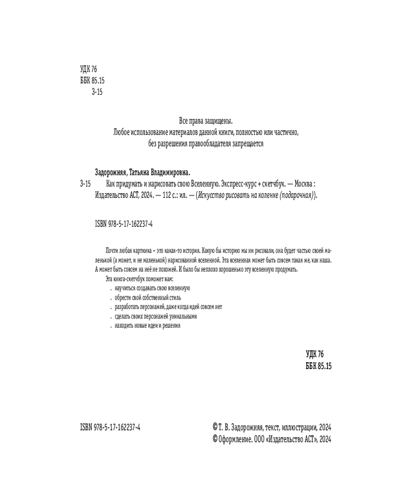 Как придумать и нарисовать свою Вселенную. Экспресс-курс и скетчбукТатьяна Владимировна Задорожняя +65