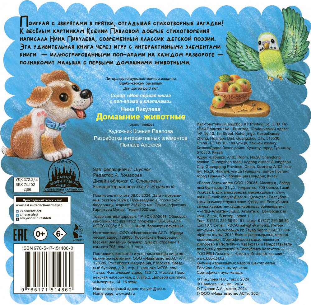 💳 Оплатить за товар можно при получении 🇰🇿 Есть бесплатная доставка по Казахстану от 1 дня 🎁 Копите бонусы с каждой покупки Серия: Моя первая книга с поп-апами и клапанами Поиграй с зверятами в прятки, отгадывая стихотворные загадки! К весёлым картинкам Ксении Павловой добрые стихотворения написала Нина Пикулева, современный классик детской поэзии. Эта удивительная книга через игру с интерактивными элементами книги — иллюстрированными поп-апами на каждом развороте — познакомит малыша с первыми домашними животными. |