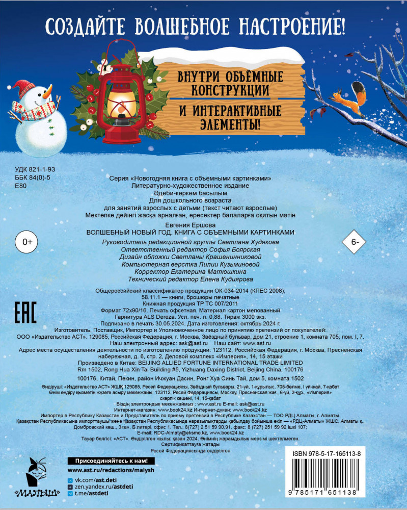 💳 Оплатить за товар можно при получении 🇰🇿 Есть бесплатная доставка по Казахстану 🎁 Копите бонусы с каждой покупки Серия: Новогодняя книга с объемными картинками Новый год — время чудес и исполнения желаний! Читайте милые стихи о самом любимом празднике и создайте волшебное настроение. Внутри 6 объёмных конструкций и интерактивных элементов. |