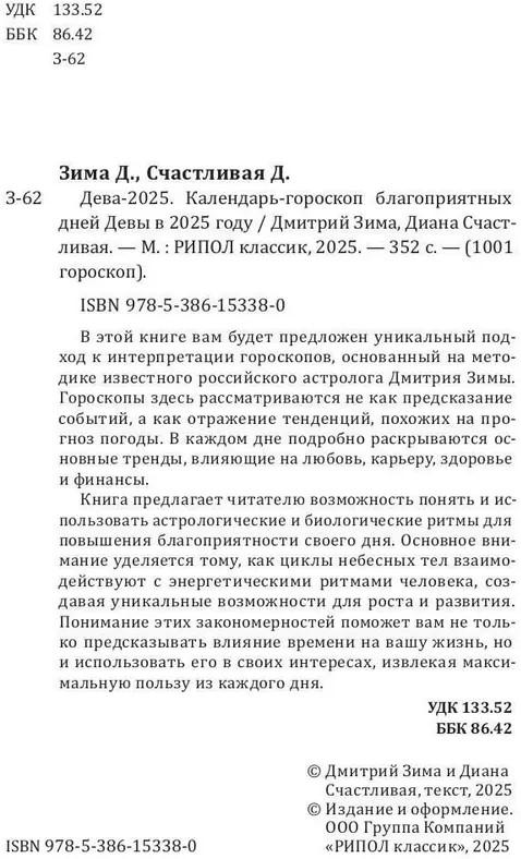 | Дева-2025. Календарь-гороскоп благоприятных дней Девы в 2025 году Дмитрий Зима, Диана Счастливая