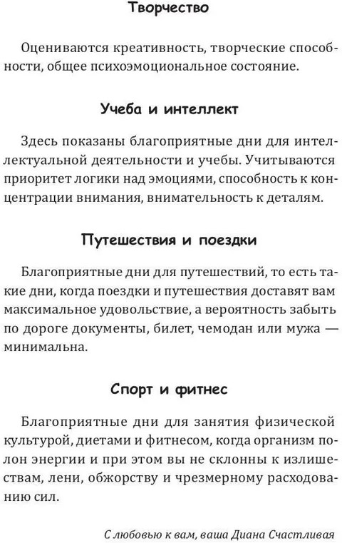 Книга предлагает читателю возможность понять и использовать астрологические и биологические ритмы для повышения благоприятности своего дня. Основное внимание уделяется тому, как циклы небесных тел взаимодействуют с энергетическими ритмами человека, создавая уникальные возможности для роста и развития. Понимание этих закономерностей поможет вам не только предсказывать влияние времени на вашу жизнь, но и использовать его в своих интересах, извлекая максимальную пользу из каждого дня. |