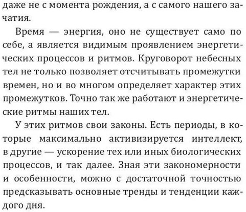 Книга предлагает читателю возможность понять и использовать астрологические и биологические ритмы для повышения благоприятности своего дня. Основное внимание уделяется тому, как циклы небесных тел взаимодействуют с энергетическими ритмами человека, создавая уникальные возможности для роста и развития. Понимание этих закономерностей поможет вам не только предсказывать влияние времени на вашу жизнь, но и использовать его в своих интересах, извлекая максимальную пользу из каждого дня. |