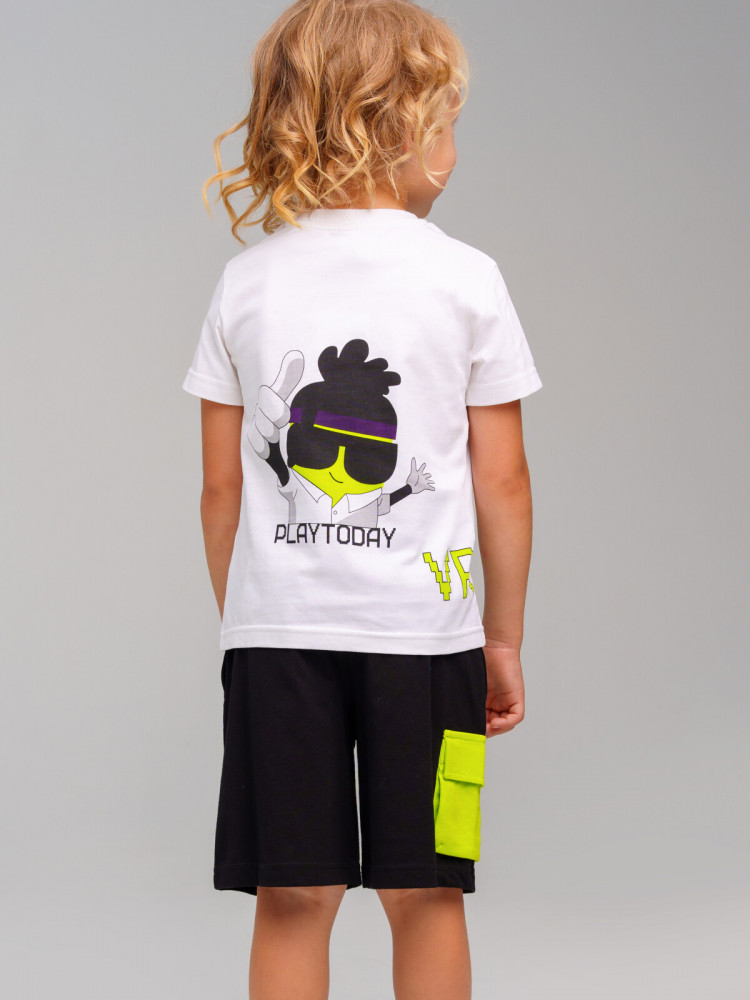 Футболка, шорты с высоким содержанием хлопка. Шорты на резинке со шнурком. Модель из капсульной коллекции Vr avatar. Соберите полный образ в едином стиле! Комплект будет актуален для детского сада.