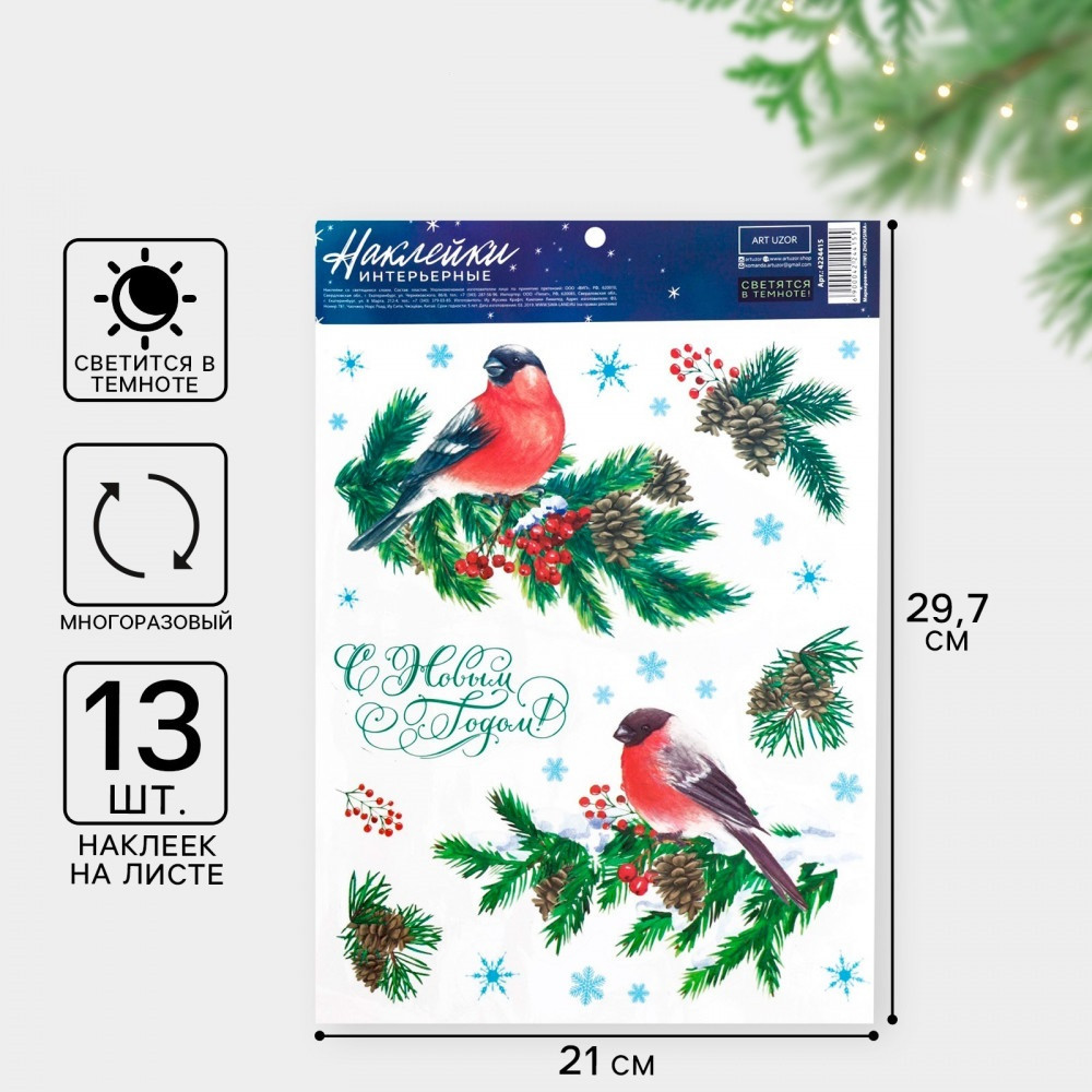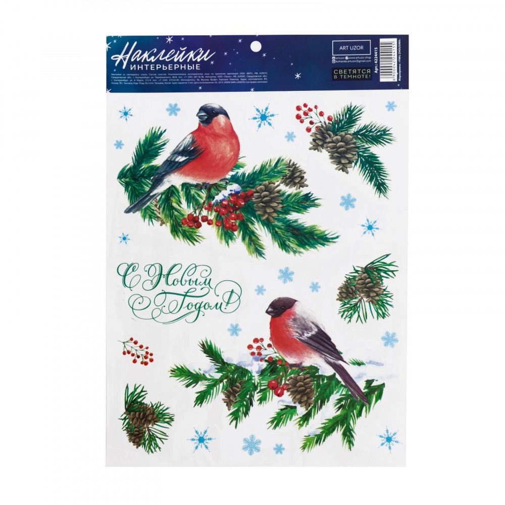 ИнтерPresent Наклейка со светящимся слоем «Снегири»+6 красивые красиво стильно размер светящийся слой