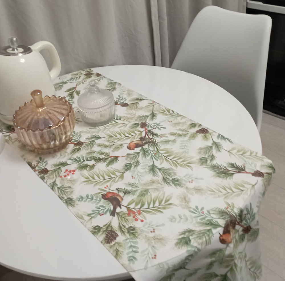 Замечательно смотрится на столе. Не навязчивая, спокойный рисунок, Аккуратно сшитая, качество хорошее
