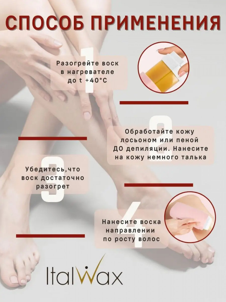 Натуральный картриджный воск Italwax обладает хорошей адгезивностью, что обеспечивает эффективность процедуры депиляции. Волоски удаляются быстро вместе с корешками. Клиент получает минимальные болевые ощущения и долговременный результат. Наносить воск картриджный Italwax на одну и ту же зону можно не более 2-х раз. Картриджи для депиляции Италвакс имеют натуральный состав, что гарантирует бережное воздействие на кожу. Italwax картридж для воскоплава — отличный выбор для тех, кто ищет качественные продукты для эффективной депиляции.