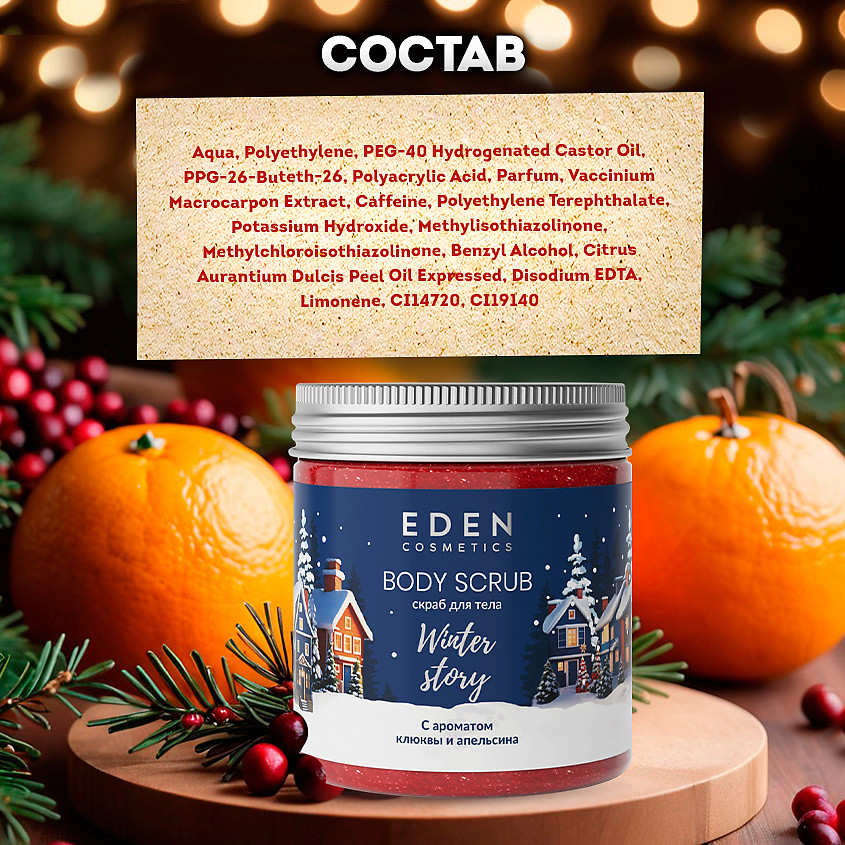 Eden cosmetics Набор средств для тела подарочный «Blue»В данный момент этот товар отсутствует в продаже. Возможно, у нас найдется аналогичный или похожий товар здесь. Серия: Winter story Крем для тела с ароматом клюквы и апельсина. Ощутите бережную заботу с серией «Winter story». Крем для тела придаст Вашей коже шелковистость и мягкость без ощущения липкости. Входящий в состав экстракт клюквы стимулирует обменные процессы в глубоких слоях кожи и повышает клеточный иммунитет. Эфирное масло сладкого апельсина повышает упругость кожи, оказывает витаминизирующее и защитное действие. Пантенол восстанавливает и питает сухую кожу. |