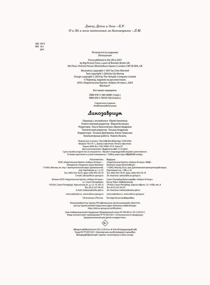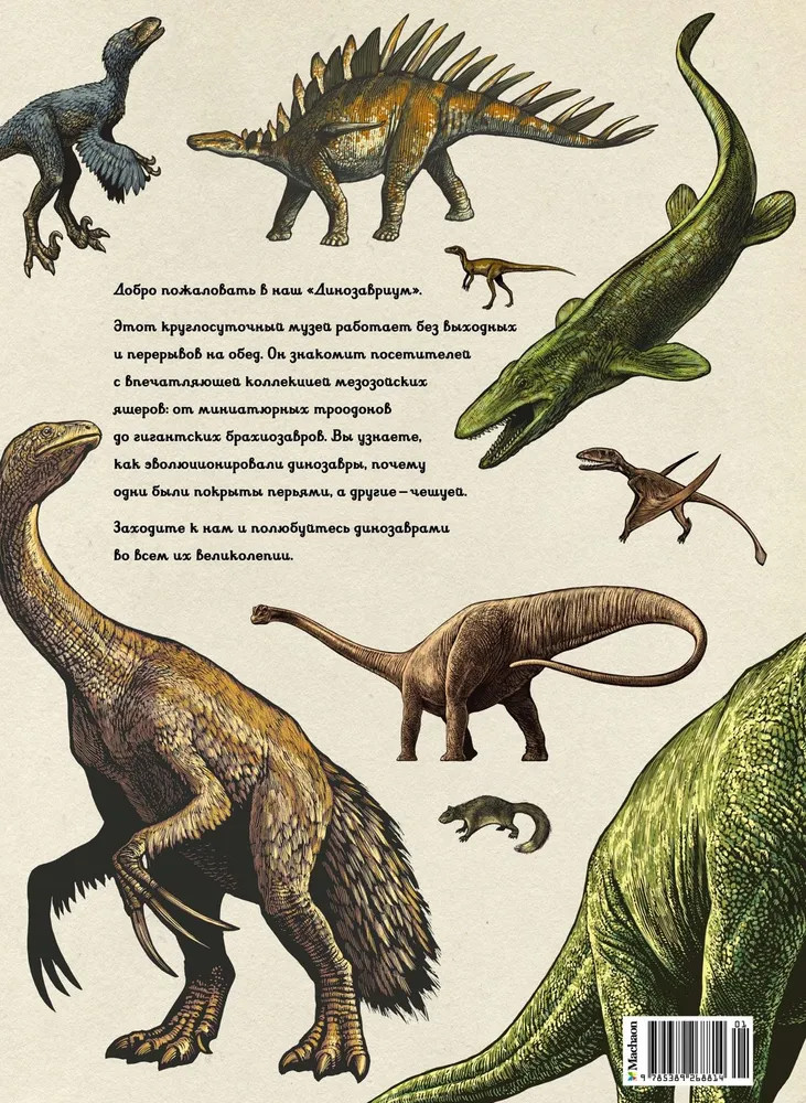 💳 Оплатить за товар можно при получении 🇰🇿 Есть бесплатная доставка по Казахстану от 1 дня 🎁 Копите бонусы с каждой покупки Серия: Энциклопедии Добро пожаловать в наш «Динозавриум». Этот круглосуточный музей работает без выходных и перерывов на обед. Он знакомит посетителей с впечатляющей коллекцией мезозойских ящеров: от миниатюрных троодонов до гигантских брахиозавров. Вы узнаете, как эволюционировали динозавры, почему одни были покрыты перьями, а другие — чешуей. Заходите к нам и полюбуйтесь динозаврами во всем их великолепии. |