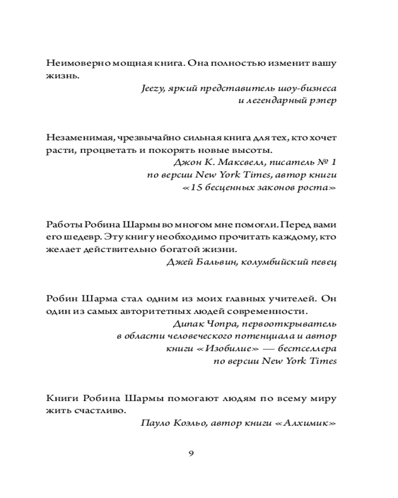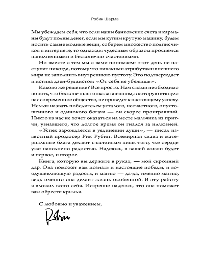 Эта книга станет моей настольной. Люблю читать Р. Шарма, они меня вдохновляют. С каждой главы выписываю для себя важные мысли, чтобы учиться практиковать их. Рекомендую все его книги 👍. Это неизбежный рост сознания.