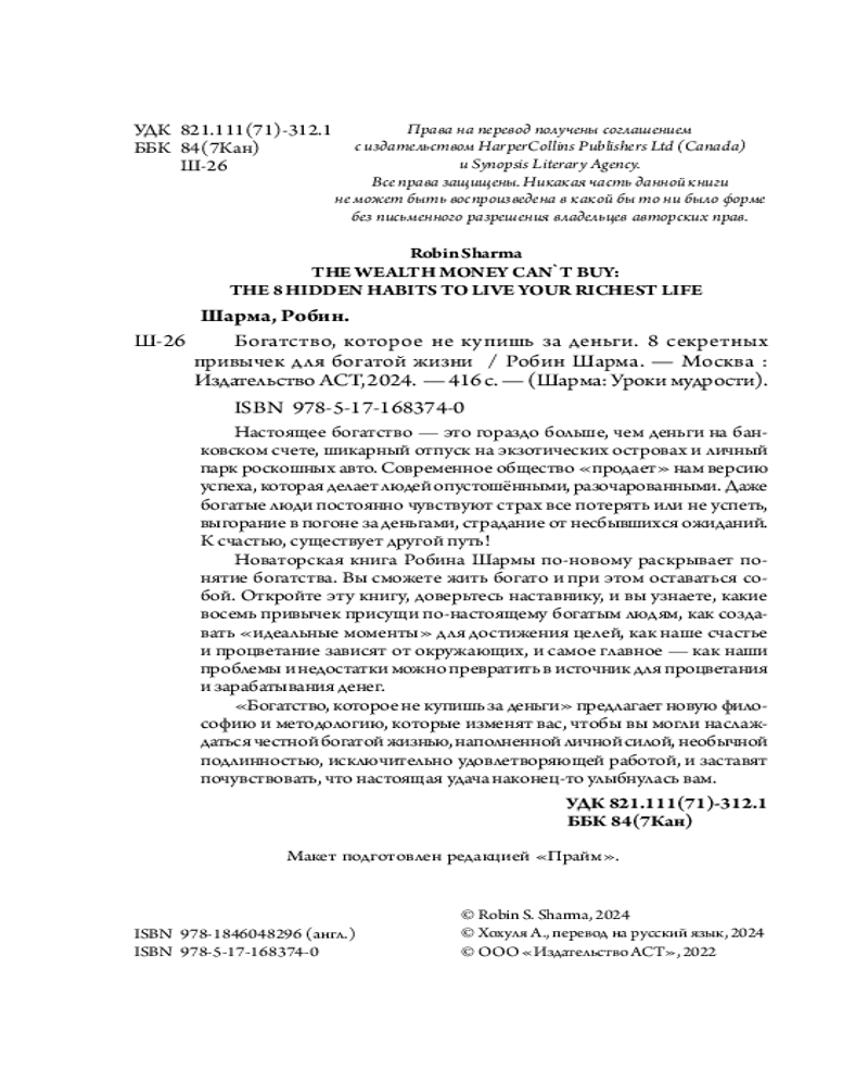 Богатство, которое не купишь за деньги. 8 секретных привычек для богатой жизни+174 качество легко читается для подарка