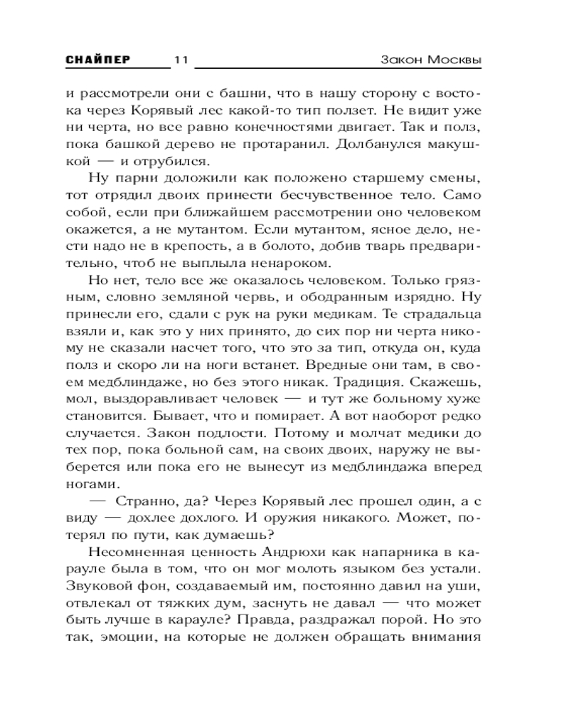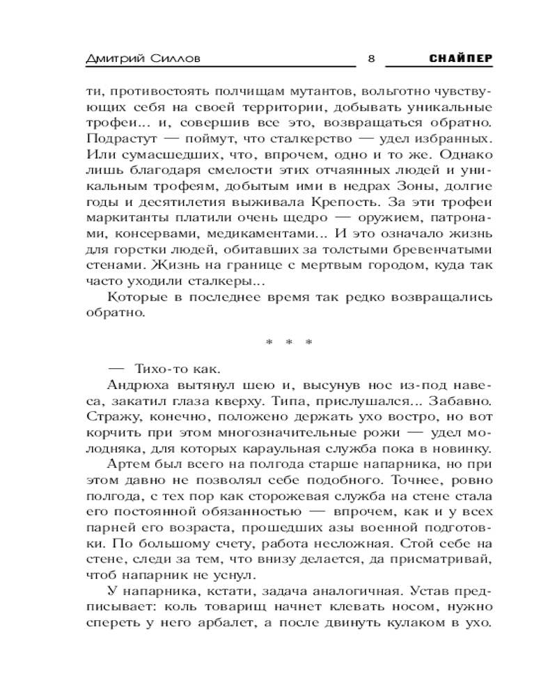 💳 Оплатить за товар можно при получении 🇰🇿 Есть бесплатная доставка по Казахстану от 1 дня 🎁 Копите бонусы с каждой покупки Серия: Снайпер Дмитрий Силлов Проникнуть в Зону с одним ножом и пистолетом? На территорию, населенную кошмарными порождениями Последней войны? Кто-то назовет это авантюрой, граничащей с безумием. Однако Артема подпитывает вера в то, что его отец, ушедший в город хищных мутантов, свихнувшихся биороботов и порожденных Излучателями чудовищ, все еще жив. И разве смогут Снайпер, Ион и Японец остаться в стороне и не попытаться помочь сыну сталкера осуществить его самое заветное желание? Да только реально ли это, когда против изгоя ополчилась сама Зона... |