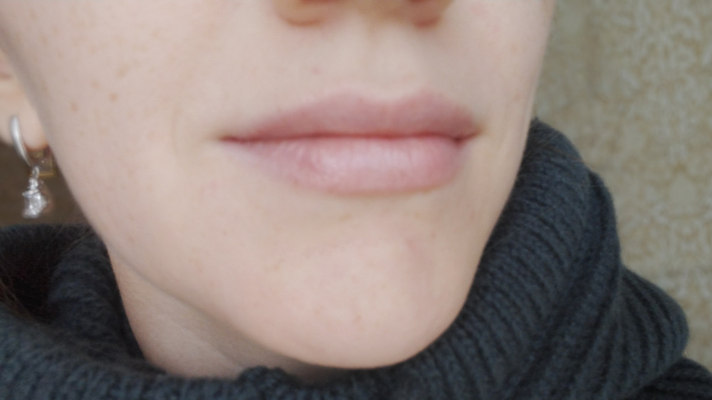 Наношу поверх бальзама для губ. Губы выглядят естественно и ухоженно.