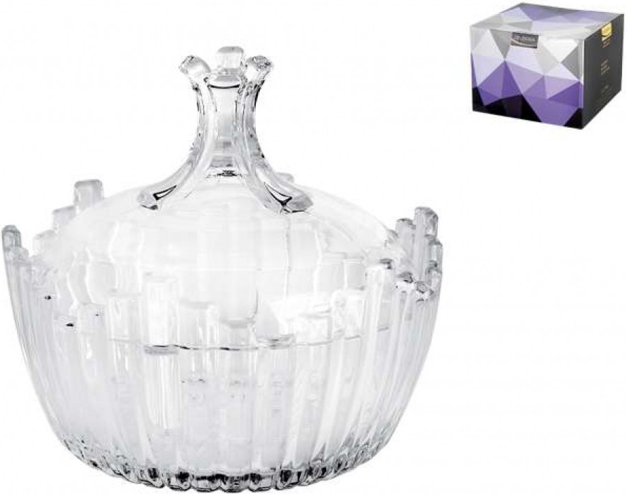 Delisoga Сахарница-конфетница с крышкой «Горный хрусталь»В данный момент этот товар отсутствует в продаже. Возможно, у нас найдется аналогичный или похожий товар здесь. Ваза для конфет и сахара с крышкой с изящными гранями резки и утончённым орнаментом на любом столе будет смотреться восхитительно! Посуда выполнена из стекла. Материал прочен и надежен, не содержит компонентов, которые могут повлиять на вкус пищи. Стекло подходит для длительного хранения продуктов и не впитывает запахи. Благодаря своему изысканному оформлению конфетница станет великолепным украшением интерьера кухни и гостиной. |