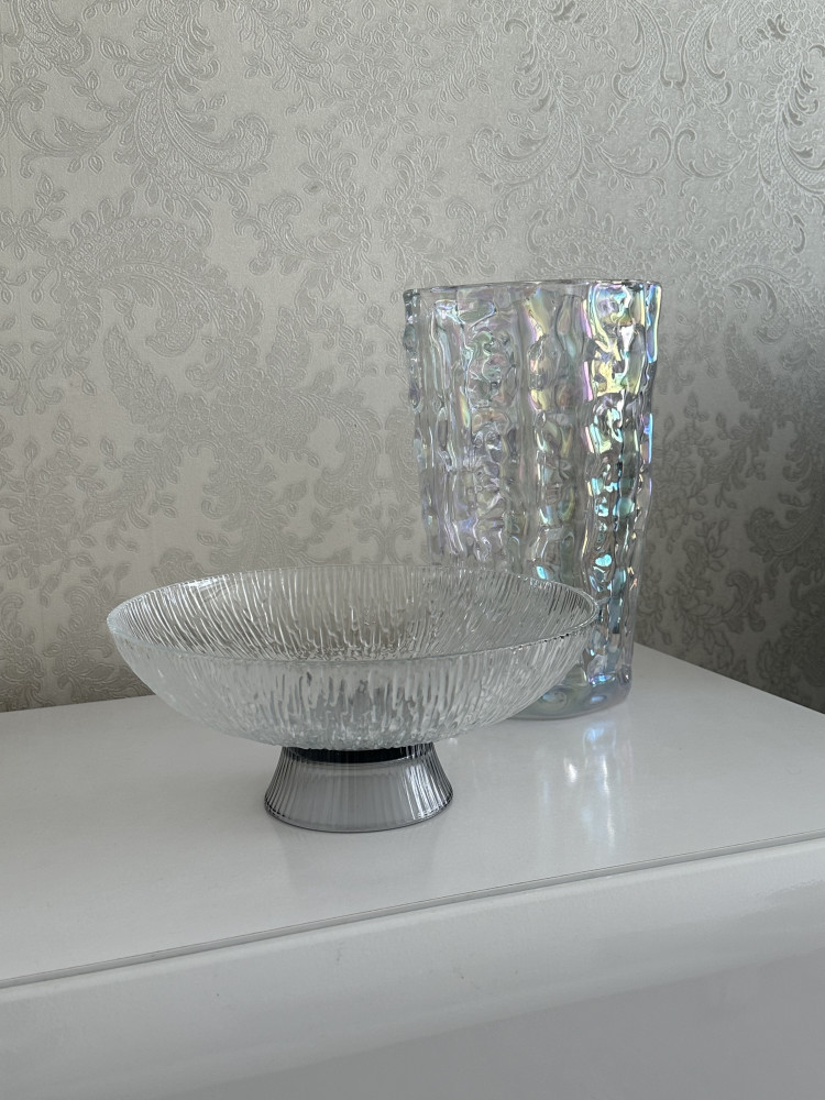 Delisoga Фруктовница на ножкеВ данный момент этот товар отсутствует в продаже. Возможно, у нас найдется аналогичный или похожий товар здесь. Фруктовница из стекла добавит изящество и утонченность Вашему столу. Ребристая поверхность придает ей особый шарм и привлекательность. Благодаря большому объему, фруктовница на ножке позволяет разместить множество свежих фруктов, ягод или десертов и создаст на Вашем столе яркую композицию. Ваза для фруктов станет ярким акцентом на кухне и украсит любой интерьер. |