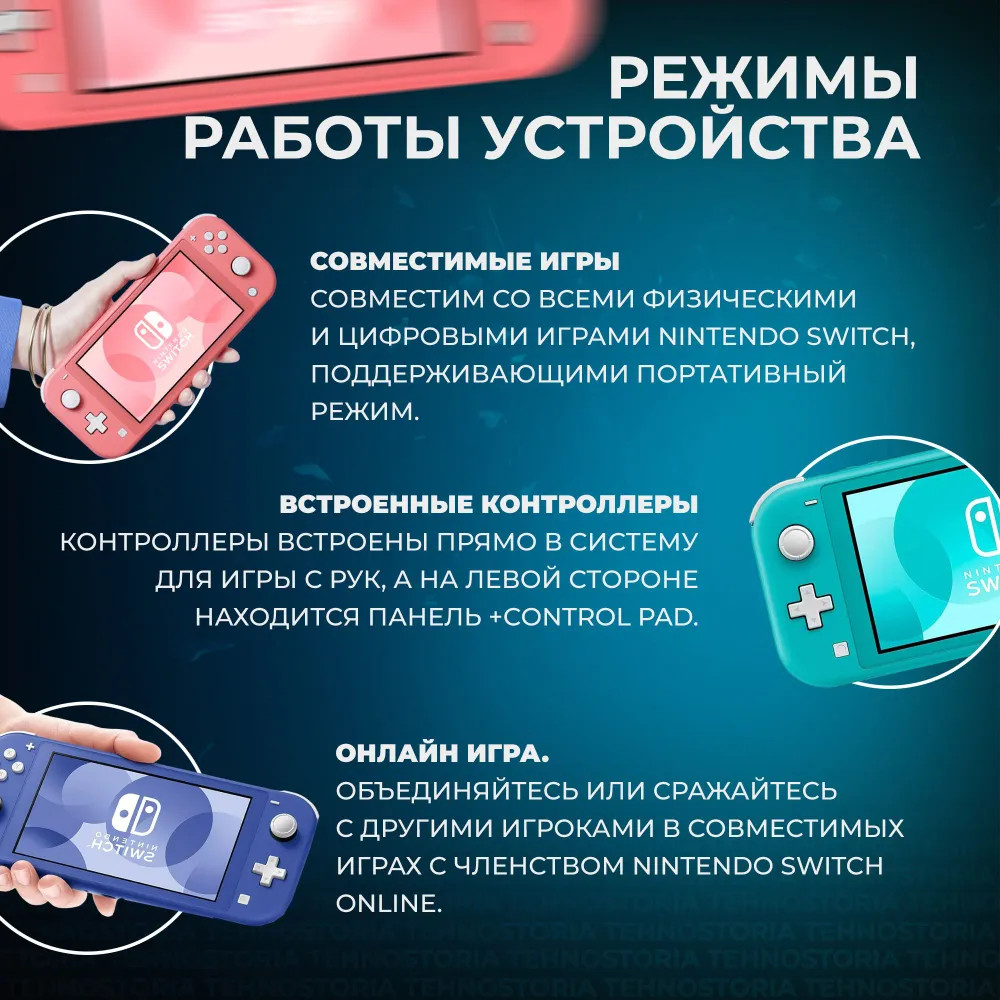 Nintendo Игровая консоль Switch LiteВ данный момент этот товар отсутствует в продаже. Возможно, у нас найдется аналогичный или похожий товар здесь. Игровая приставка Nintendo Switch Lite — изящное решение в мире портативного гейминга, позволяющее оставаться с видеоиграми всегда и везде. Название модели «Switch Lite» говорит само за себя: легкая — всего 277 грамм, тонкая — 13.9мм., но одновременно с этим обладает цельным и крепким корпусом. Емкий аккумулятор позволит наслаждаться любимыми играми до 7 часов непрерывно, а качество HD-изображения на 5,5 дюймовом экране портативного устройства с мощным встроенным игровым процессором не оставит равнодушным даже самых придирчивых геймеров! Отметим и то, что разработчики позаботились о комфортном управлении приставкой и установили полноценную кнопку-крестовину в Nintendo Switch Lite. Игровая консоль удобна в использовании где бы вы не находились! Уютно расположитесь со Switch Lite дома или возьмите ее в поездку и играйте в легендарные игры как и где вам удобно благодаря компактным размерам! Для Lite-версии доступна огромная игровая библиотека Nintendo Switch, где сможете собрать свою коллекцию игр с портативным режимом. Используйте 32 гигабайта встроенной памяти и расширяйте объем вашего игрового хранилища с помощью обычных карт памяти Micro-SD до 256 гигабайт. Объединяйте до 8 приставок в многопользовательский локальный режим или находите новых друзей в сетевых играх Nintendo Switch Online. Используйте все преимущества этой уникальной игровой приставки со всеми хитами Nintendo и играми-платформерами! |