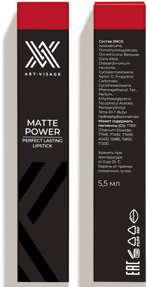 Art-Visage Помада для губ «Matte Power», тон 21 Глубокий красный
