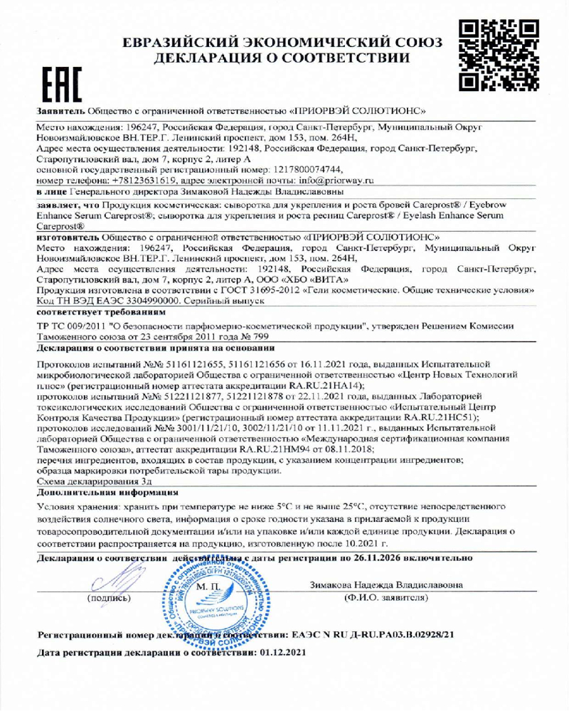ХБО при РАН «Вита» Сыворотка для роста волос «Careprost»