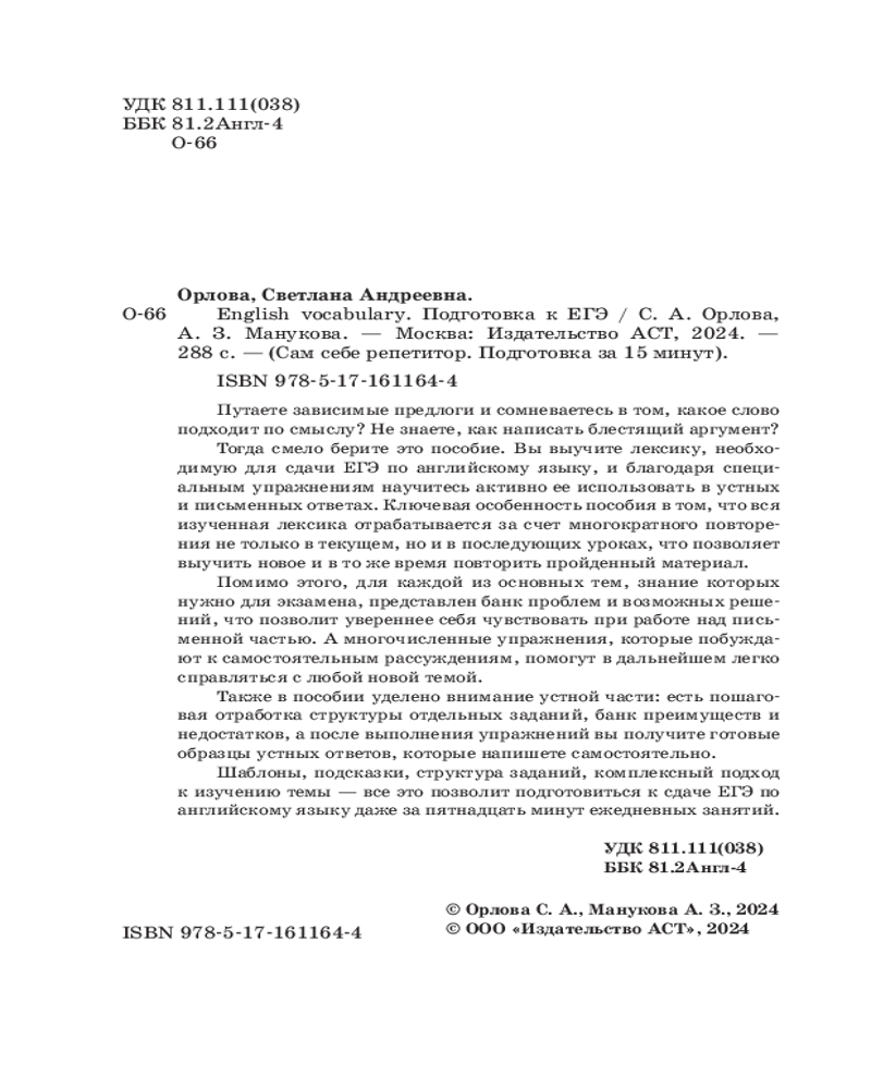 ЕГЭ. Английский. English vocabulary. Подготовка за 15 минут в деньСветлана Андреевна Орлова, Аида Зармиковна Манукова +110