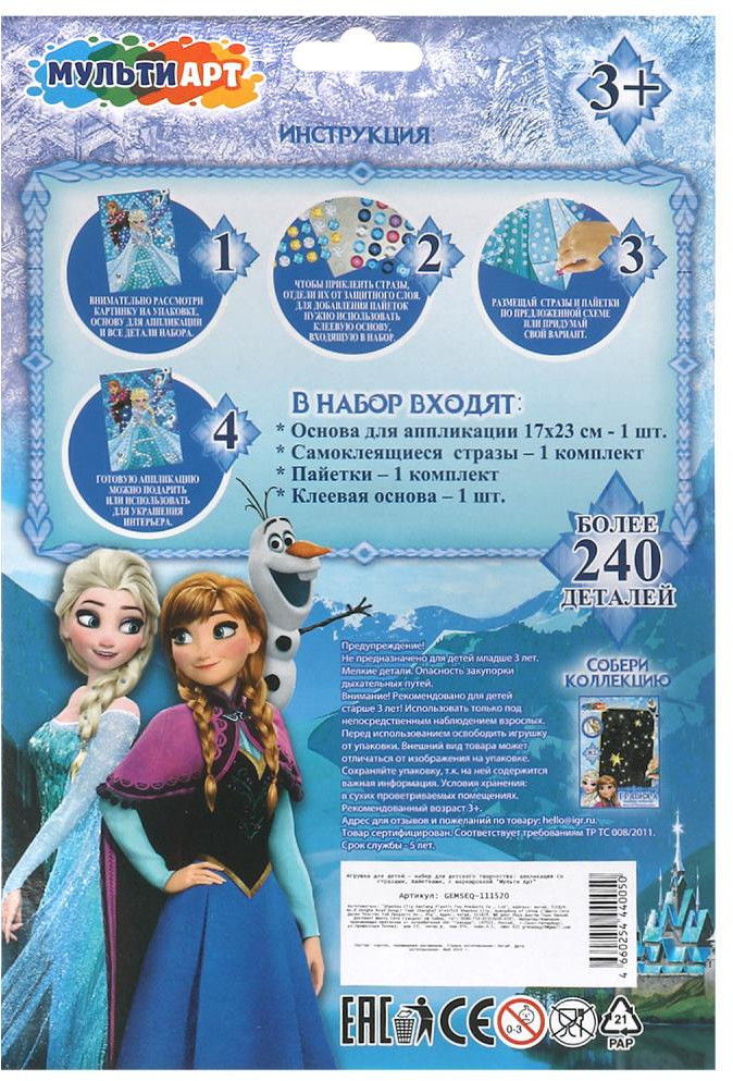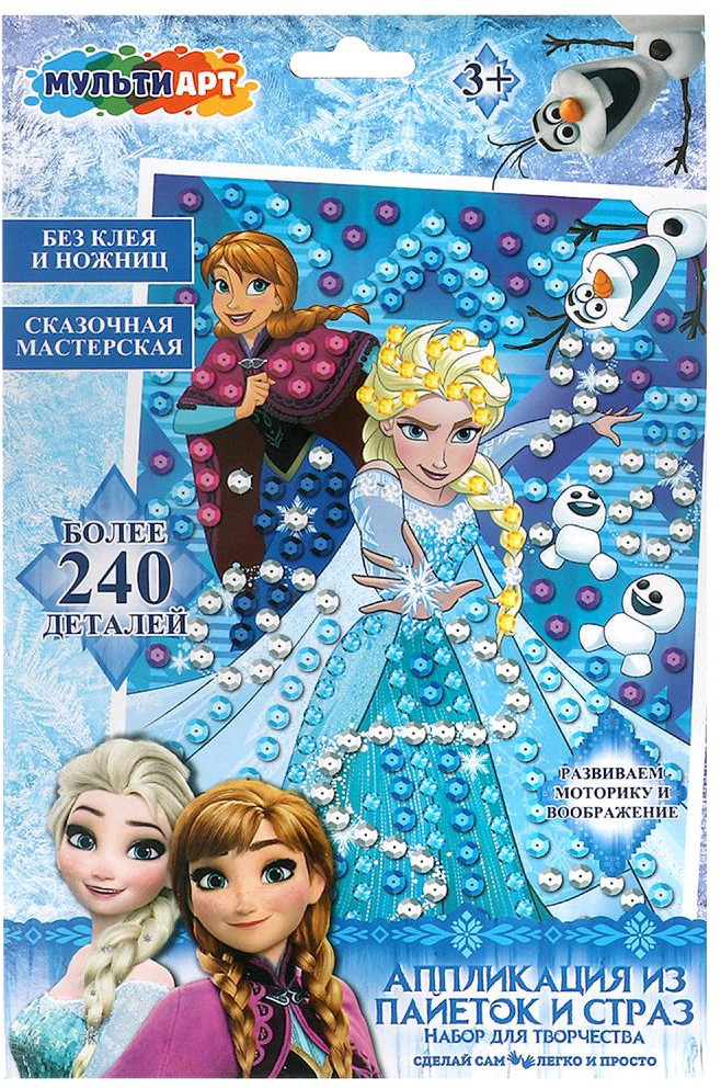 Набор для творчества — аппликация со стразами и пайетками «Снежная принцесса» из серии «Сказочная мастерская» ТМ «Мульти Арт» — отличный подарок для вашего ребёнка, который будет способствовать развитию его творческих способностей. |