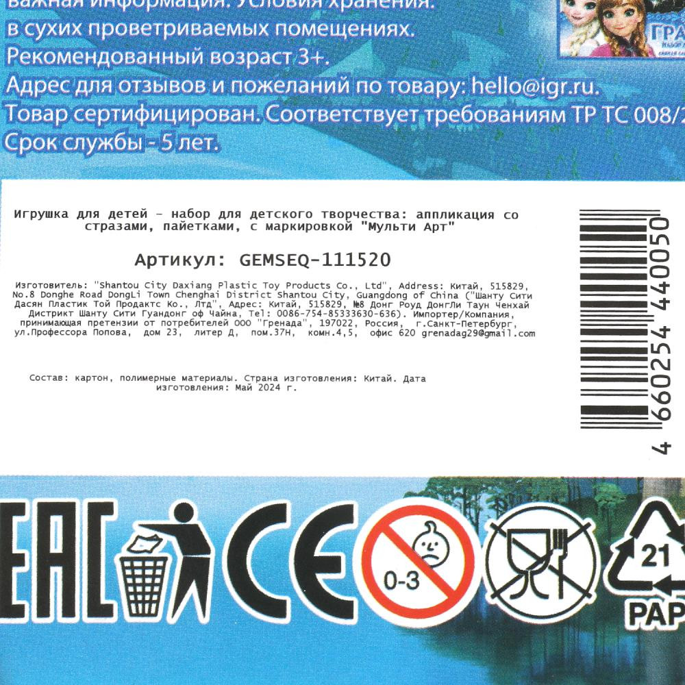 Multi Art Аппликация со стразами и пайетками «Снежная принцесса»-30%