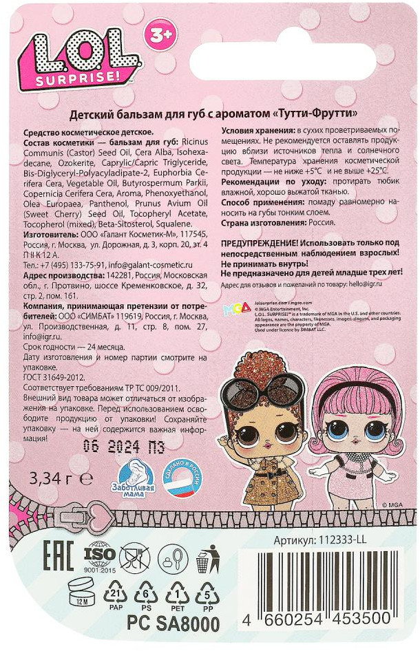 Заботливая мама Бальзам для губ детский «ЛОЛ. Тутти-фрутти»В данный момент этот товар отсутствует в продаже. Возможно, у нас найдется аналогичный или похожий товар здесь. Серия: L.O.L. Surprise Детский бальзам для губ «ЛОЛ. Тутти-фрутти» ТМ «Заботливая мама» — надёжная защита для вашей малышки: |