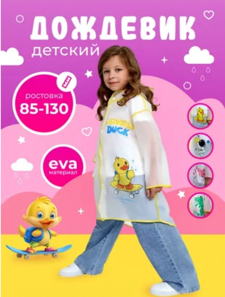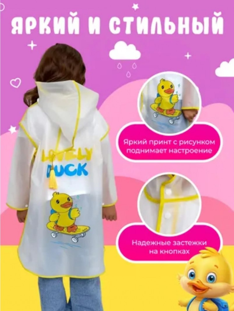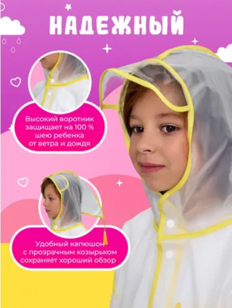 Плащ с капюшоном и козырьком станет незаменимым атрибутом в гардеробе вашего ребенка. Верхняя одежда обеспечивает надежную защиту от влаги. Плащ украшен милыми 3D-рисунками. Подходит для девочек и мальчиков, подчеркнет их стиль и добавит ярких красок в пасмурные дни. Легкий плащ дождевик — одежда комфортная и практичная, способная выдержать активные игры на природе. Дождевик подходит детям разного возраста и станет отличным выбором для прогулок. Этот тип верхней одежды легкий и компактный, его можно легко сложить и носить с собой!