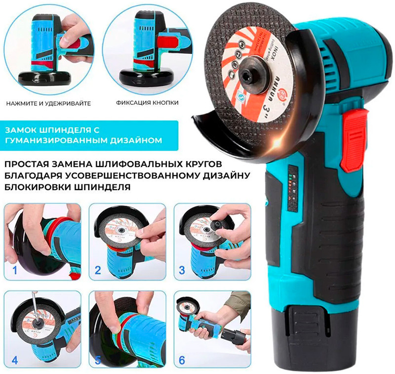 Угловая мини-шлифовальная машинаВ данный момент этот товар отсутствует в продаже. Возможно, у нас найдется аналогичный или похожий товар здесь. Аккумуляторная 12 V угловая мини шлифовальная машина с двумя дисками в комплекте (76 мм) применяется для обработки, резки, шлифовки и зачистки материалов: металла дерева керамики и пластика. Благодаря аккумуляторному типу, устройство подойдет для использования в любом месте, так же за счет своих размеров позволяет работать в труднодоступных местах. За счет малой вибрации и веса расходуется меньше сил, а также болгарка не требует воды для охлаждения, корпус имеет вентиляционные отверстия для высокого отвода тепла и охлаждения рабочего механизма от перегрева. Бесщеточный двигатель позволяет увеличить мощность и время. |