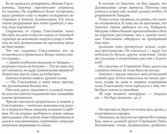 Хроники Стаи. Пустой городВ данный момент этот товар отсутствует в продаже. Возможно, у нас найдется аналогичный или похожий товар здесь. Серия: Хроники Стаи Пес-одиночка Счастливчик вырывается из Западни — дома для бездомных собак, когда начинается ужасное землетрясение. В разрушенном и обезлюдевшем городе он встречает бывших домашних псов, оставленных хозяевами на гибель без еды и крова. Счастливчик пытается пробудить в них инстинкт — Собачий Дух, научив выживать в мире без людей: находить еду и кров, сражаться с врагами и хищниками, но, прежде всего, забыть о преданности своим Длиннолапым и бежать из грозящего опасностью города. |