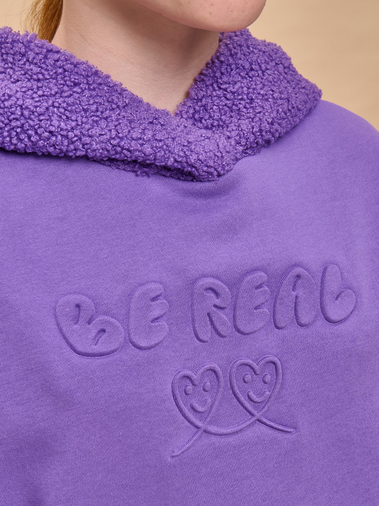 Модель неприхотлива в уходе. Оверсайз худи выполнено из ткани с высоким содержанием хлопка — джемпер мягкий, воздухопроницаемый и гипоаллергенный. Полиэстер помогает сохранить цвет и первоначальный внешний вид надолго. Модель украшает модный пресс-принт (изображение в тон изделия выдавлено по специальной технологии), изображающий два милых улыбающихся сердечка, надпись переводится: «будь реальным/настоящим». Изделие выполнено в трендовой, но универсальной расцветке, его легко комбинировать с любыми брюками, джинсами. Отличное худи оверсайз для девочки дошкольного и младшего школьного возраста, а также девочки-подростка. Джемпер подходит для детского сада, прогулок, отдыха, дома. Худи оверсайз с капюшоном подходят для круглогодичной носки.