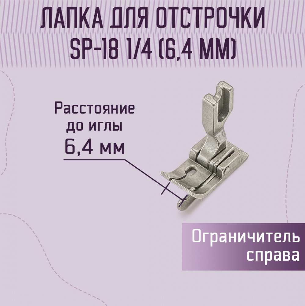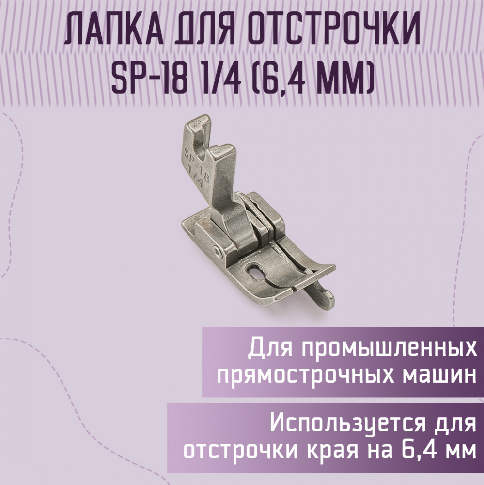 Yoke Лапка для отстрочки SP-18 1/4" (6.4 мм)В данный момент этот товар отсутствует в продаже. Возможно, у нас найдется аналогичный или похожий товар здесь. Лапка SP-18, предназначена для отстрачивания края материала с ограничителем, который удерживает край ткани на нужном расстоянии ограничителем-флажком для ровной параллельной отстрочки шва. Подходит для одноигольных прямострочных швейных машин с нижним продвижением ткани. Лапка SP-18 служит для отстрочки края изделия во время прокладки стачивающего или отделочного шва на определенное расстояние от края материала. Расстояние отстрочки SP-18 ¼ составляет 6,4 мм. Подходит только для промышленных одноигольных прямострочных машин. Указанный размер лапки — это расстояние стачивающего или отделочного шва от края справа. С их помощью можно выполнить аккуратную отделочную строчку. Ограничитель способствует ровному продвижению ткани, не стягивая при шитье и не препятствует продвижению. Также с этой лапкой легко и просто создать строчку на необходимом расстоянии от края изделия. Лапку с ограничителем применяют, когда нужно расстрочить изделие, прошить срезы и выполнить потайные швы. Она незаменима для создания классических и декоративных видов стежков, соединения деталей с заданной шириной припуска. |