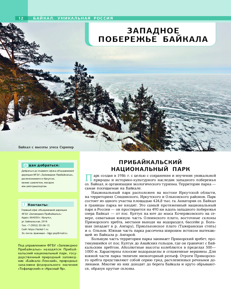 Читайте про обитателей Байкала, узнавайте о природе края, наслаждайтесь видами и планируйте свое следующее путешествие. Эта книга поможет вам выбрать маршрут путешествия по Байкалу, подскажет, что обязательно стоит посмотреть в уникальном регионе России.