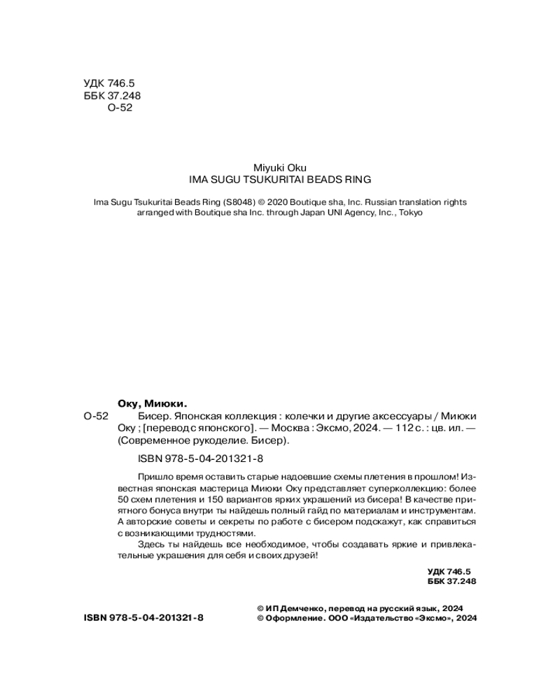💳 Оплатить за товар можно при получении 🇰🇿 Есть бесплатная доставка по Казахстану от 1 дня 🎁 Копите бонусы с каждой покупки Серия: Современное рукоделие. Бисер Однотипные бисерные колечки остались в прошлом! С этой книгой ты сплетешь украшения, каких не будет больше ни у кого! |