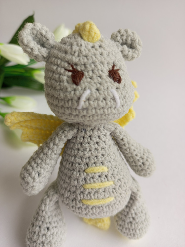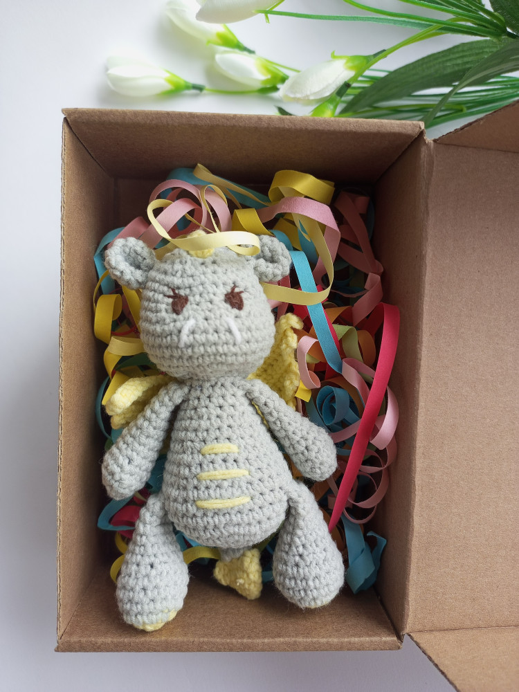 Игрушка мягкая вязаная «Дракончик»В данный момент этот товар отсутствует в продаже. Возможно, у нас найдется аналогичный или похожий товар здесь. Очаровательная мягкая вязаная игрушка "Дракончик" ручной работы станет прекрасным подарком. Высота игрушки — 13 см, ширина — 8 см, что делает её компактной и удобной для детских ручек. Выполнена из пряжи, состоящей на 55% из хлопка и на 45% из полиакрила, с наполнителем из синтепона, что обеспечивает мягкость и долговечность. Игрушка поставляется в красивой коробочке с наполнителем, готова стать милым презентом для детей и взрослых. |