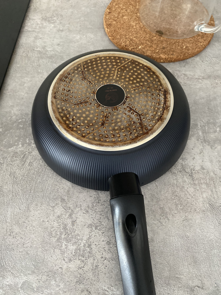 чистила сковородку от жира.и оставляла на время пасту на жире,и тёрка с щёткой , обычный порошек так же справляется