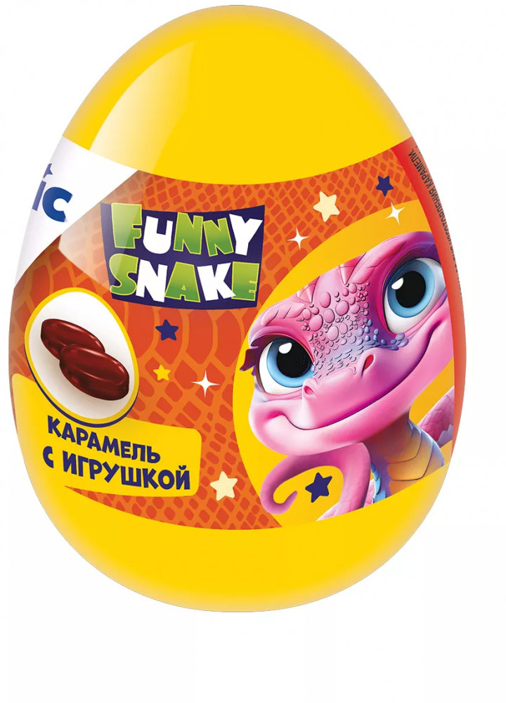 Конфитрейд Карамель с игрушкой «Funny Snake»В данный момент этот товар отсутствует в продаже. Возможно, у нас найдется аналогичный или похожий товар здесь. Серия: Magic Egg Карамель леденцовая со вкусом апельсина в пластиковом яйце и игрушка. Коллекционные игрушки в пластиковом яйце — один из традиционных продуктов Конфитрейд уже очень много лет. В некотором роде данный продукт является заменителем и аналогом традиционных шоколадных яйц, особенно в летнее время, когда из-за жаркой погоды шоколад неудобно приобретать и хранить. Пластиковые яйца заметно крупнее по размеру своих шоколадных братьев. И само по себе яйцо является забавной игрушкой, своеобразной шкатулкой для хранения мелочей. Оно крупное, прочное, окрашено или покрыто пленкой фирменного цвета — в цвет соответствующего мультфильма или сказочного героя. Внутри яйца находится пакетик со сладостью — это 10 г карамели со вкусом апельсина. А также вложена небольшая коллекционная игрушка. |