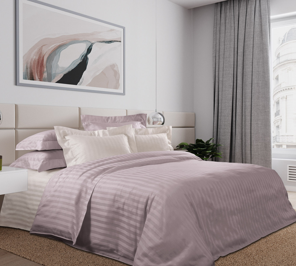 «Фирменный» признак страйпа — чередование на ткани полос матовой и блестящей фактуры. Страйп (stripe) и переводится с английского как «полоска». Такая «полосатая» структура делает страйп очень прочной и износостойкой тканью, которую можно стирать даже при высоких температурах. По ощущениям страйп самый теплый из всех видов ткани, а всё из-за сложного переплетения: ткань удерживает воздух и сохраняет тепло, выделяемое телом во время сна.