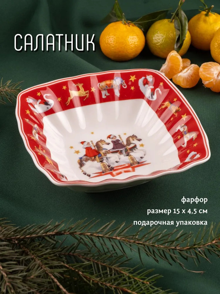 Этот красивый салатник станет идеальным дополнением к вашему праздничному столу, особенно в преддверии Нового года. Изготовленный из качественного фарфора, он не только отличается изысканным дизайном, но и высокой долговечностью, что позволяет использовать его как для повседневной сервировки, так и для особых случаев.