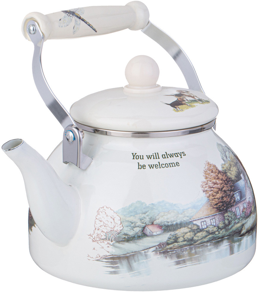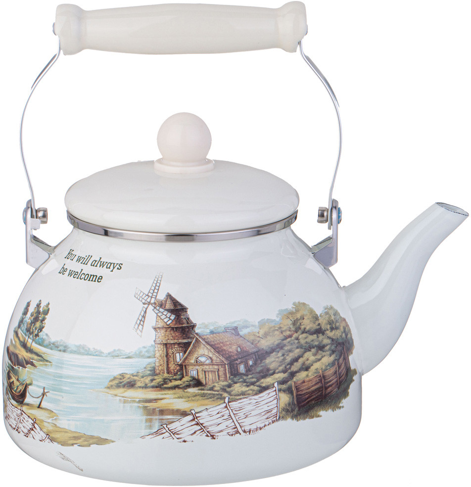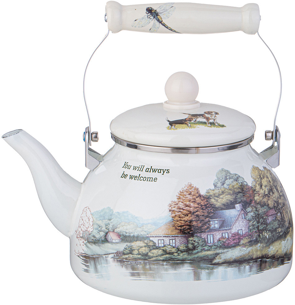 Оптимальный объем 2,6 л, картинка Домик в деревне располагают к приятному чаепитию