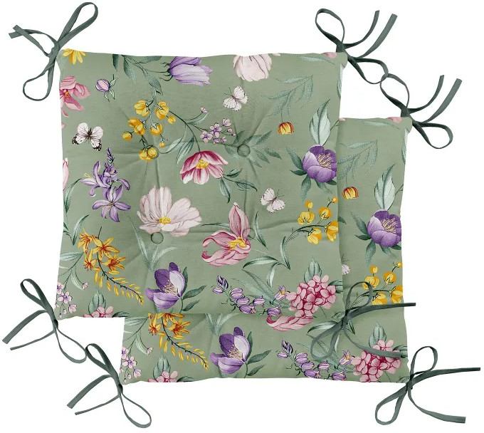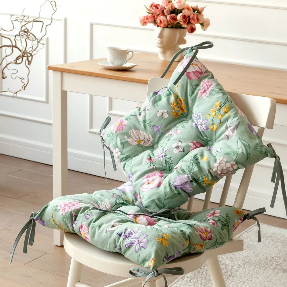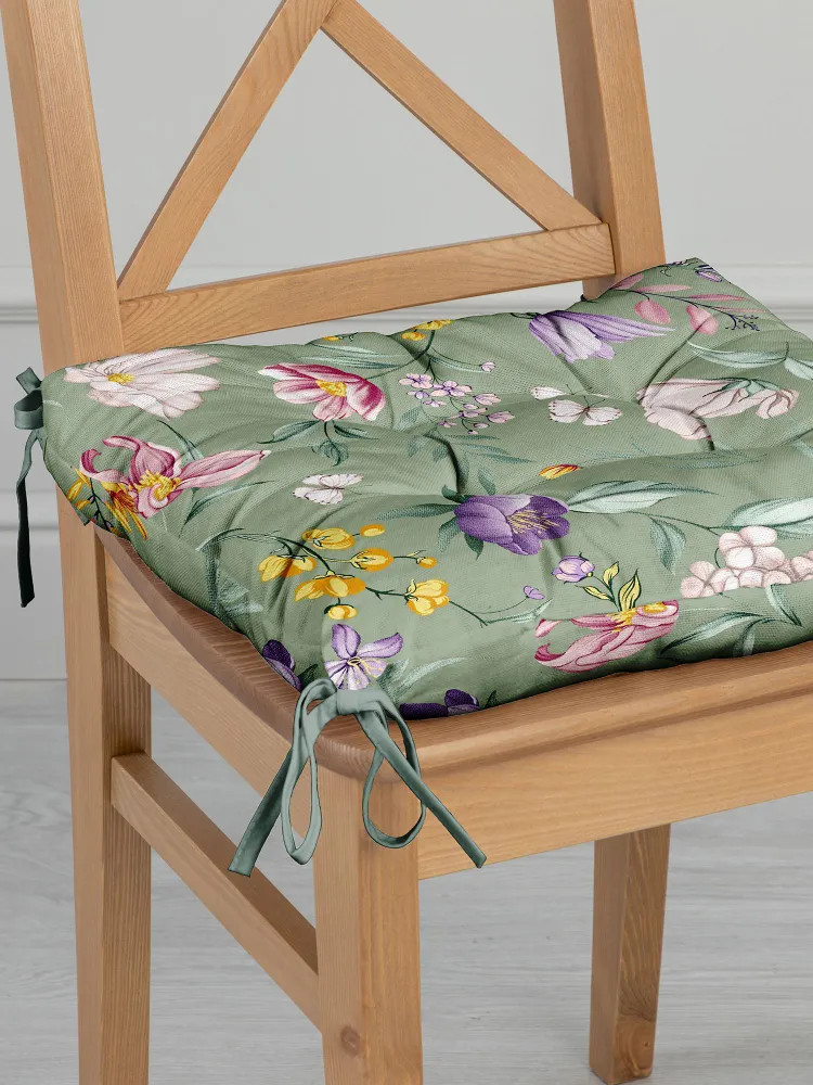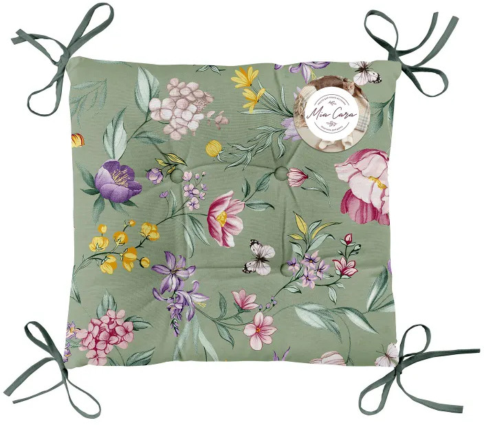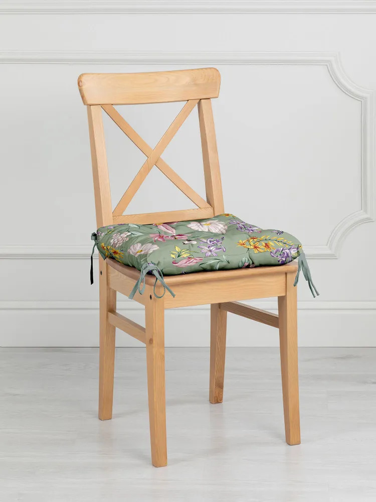 Мягкие и плотные подушки на стулья Mia Cara. Квадратные подушки-сидушки на стулья в размере 40 × 40 см подойдут для стульев самых разнообразных размеров. Благодаря хлопковым завязкам, подушка на стул может быть зафиксирована так, как удобно именно вам. Материал верхнего чехла — 100% хлопок рогожка. Это натуральный материал, стойкий к истиранию, загрязнениям и неприхотливый в уходе.