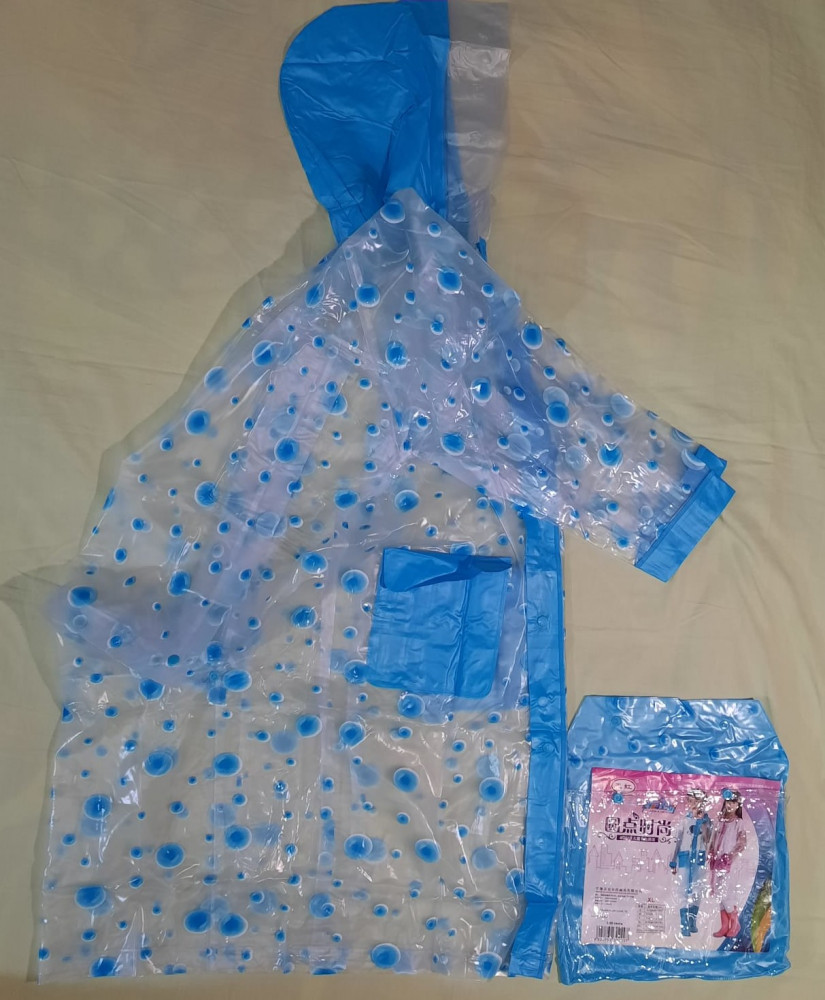 Размеры сняты с разложенного дождевика в плоском виде. Длина дождевика по спинке 90 см. Длина рукава от капюшона 59 см. Ширина по груди 55 см, по низу 56 см. Плеча выраженного нет, рукав реглан, от капюшона. Есть карманы накладные. По спинке есть возможность расширения на кнопочках для облегания рюкзака. В сложенном виде хранится в в папочке на кнопках с петелькой. Размеры в упаковке 26 × 24 × 2 см.